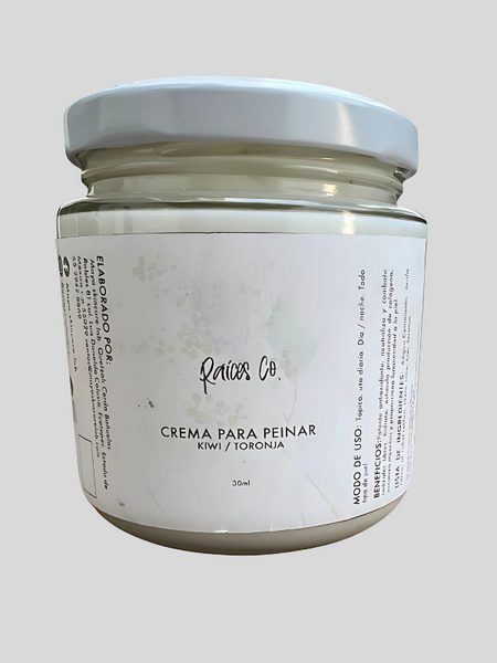 La Crema Sólida para Peinar de RAÍCES CO con extractos de kiwi y toronja ofrece hidratación profunda y control del frizz, dejando tu cabello suave, manejable y con un aroma refrescante.Ver más